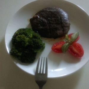 将腌制好的牛排放电饼铛煎,注意在煎之前一定要把牛排的水份晾干,否则就成了水煮牛排了。根据个人口味决定牛排的几成熟!