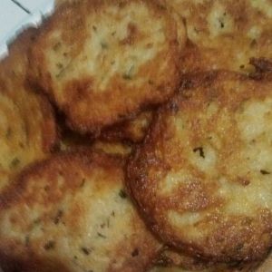 热锅加油,八分热,一汤池糊做一个饼,要想形状好,在汤池底把饼压圆。要是味道不能掌握,可以先做一个尝尝。运气好,我基本第一次都是成功的。待两面都成金黄色即可出锅。