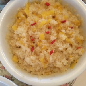 所有材料炒均匀之后,起锅放入蒸锅里面,中火蒸一个小时,完成。可依据个人口味加入枸杞大枣葡萄干。