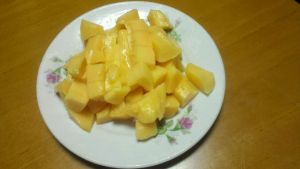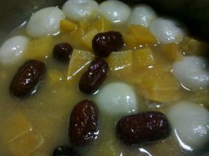 转中火五分钟,加入冰糖,小心搅拌一下,别把汤圆弄破喔,喔,木瓜清香和汤圆的软糯完美结合。