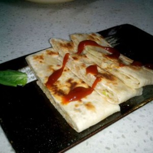 取出烙好的饼,切去边角,平均分成若干份,装盘!