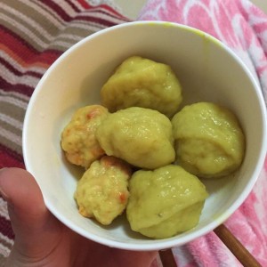 成品,好难看,我用的是超市的速冻鱼丸,煮熟了基本上没什么嚼劲儿了,建议淘宝买四海鱼丸或者日瀛鱼丸,煮出来会更有口感。我此次纯粹是临时起意,解馋用的,追求口感的不要学我!