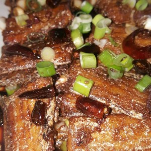 架锅放油100ml烧至8成热,转小火后放带鱼进去炸,可以炸老点捞出备用。炸完后把老姜,蒜放入锅内30秒,加100ml水放入锅内,加酱油或盐,烧开放干辣椒到锅小火烧30秒,然后把带鱼轻轻放入锅内“镀”一下,这时需放料酒,小火镀2分钟,然后放糖,醋到锅内轻轻翻炒均匀,关火放葱节翻炒两下起锅上桌食用。