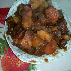 今天加了土豆胡萝卜,土豆很面,挂糊啦,品相有点失败,但是味道一流,很下饭,对于刚奶完娃的我实在是太香啦!