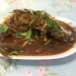 时间到了后把鱼身上的姜蒜抹干净 不要扔 留待后用,鱼身上如果腌制汁多 稍微擦干点 用面粉抹在鱼身上,这样炸出来形好看,忘了拍照片了。