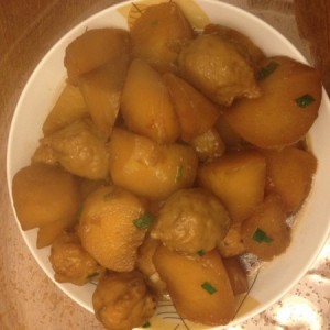 鱼丸和萝卜在锅中翻炒一下,用中火闷10分钟左右