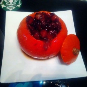 各种切戳…成“盅盖”,再把籽瓤铲出,弄干净,南瓜盅出炉!