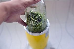 将韭菜花放进料理机打碎。