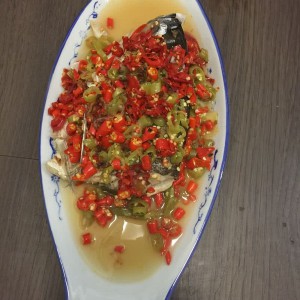 蒸制15分钟左右(时间视鱼大小可调整)熄火,虚蒸1-2分钟起锅,浇上滚油即可。