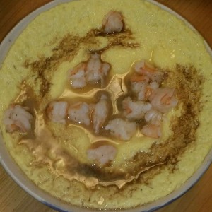 上汽2分钟后加腌制好的虾仁,继续蒸。