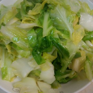 热锅凉油将蒜片姜片爆香后倒入菜翻炒