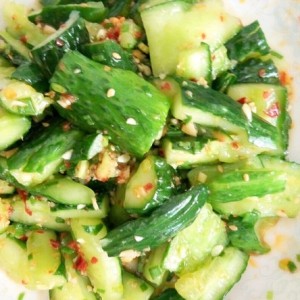黄瓜倒出水,把酱倒进去拌匀,二十分钟后即可食用