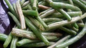 油热后放锅中煸炒,炒至豆类水分散发,干香油亮即成。但干煸的豆角比较费火,要一直小火不断的煸豆角,不断翻动,直至出现虎皮。
