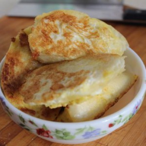 小火,油热了以后轻轻夹起馒头片温柔的蘸一下鸡蛋,趁馒头还没有反应过来,扔在锅里。煎的火大火小看个人爱好。
