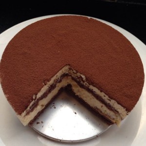 底部放入提前备好的蛋糕片,刷上咖啡酒、有用饼干的也可以,方法一样,都是抹上咖啡酒.
