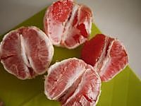 将西柚剥皮,并且将西柚果肉外层的白皮也去除