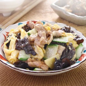 锅中留热油,爆香姜末后放入里脊肉片迅速翻炒至熟,再依次放入木耳、黄瓜、笋片炒2分钟,倒入生抽并加盐翻炒1分钟后方鸡蛋碎炒匀即可。