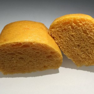 将南瓜切片上锅蒸熟,用勺子碾成泥。待南瓜泥放凉至30度左右(不烫手)时,放入酵母粉。