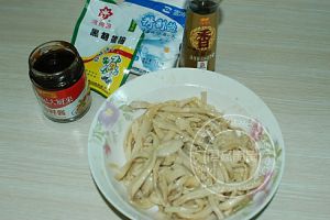加一点点盐,白糖,蒜末,芝麻油,撒点黑胡椒粉,放一勺海鲜酱拌匀后,撒上葱