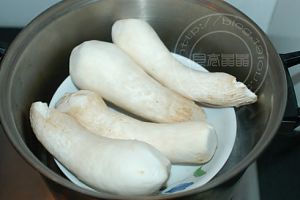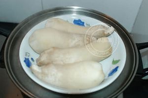 杏鲍菇洗净,上锅隔水中火蒸8分钟左右.