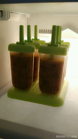 四个小时后,美美的绿豆冰棍就可以吃啦!~(小贴士:冰冻不好取,放在热水里冲一下,就很好取出来咯)