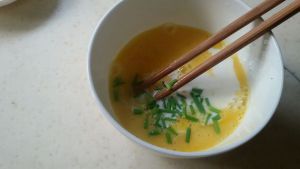 鸡蛋打散,加入牛奶和葱花,打匀。