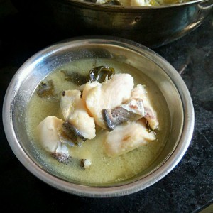 煮好后然后加入鱼肉大火煮三分钟到五分钟,我鱼肉多,煮了5分钟。尝下咸淡,然后出锅
