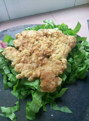 煎好了后是事这个样子。用厨房纸吸油,但是我喜欢用青菜吸油(干净环保)