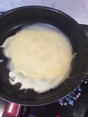 先预热平底锅,加一勺面粉糊进去看到起泡泡就到出来