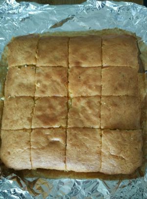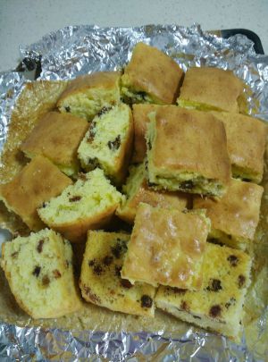 烤好的蛋糕放凉切块。