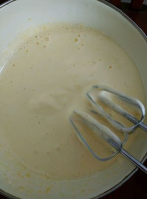 鸡蛋打发至奶油状(我打了约10分钟)。
