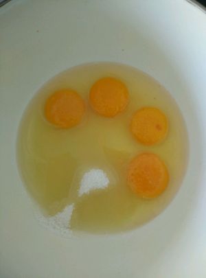 鸡蛋打入盆里一次性加入白糖。