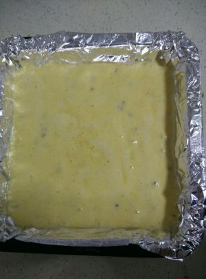 烤盘铺好铝泊纸,倒入蛋糕糊抹平,端起来震几下震出气泡,把烤盘放进预热好的180度的烤箱里,中层上下火15分钟左右。