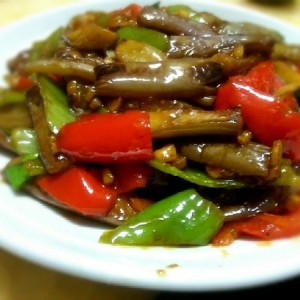 锅内放油 油热后放入大蒜生姜葱白煸炒出香味 然后倒入青红尖椒炒会 接着倒入茄子炒几分钟 再倒入调好的汁直到变浓稠 放少许鸡精 撒上葱花 就美美地开动把~