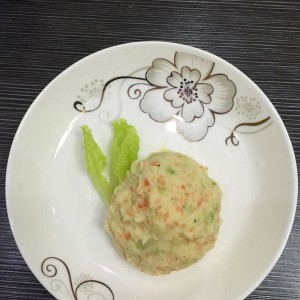 将土豆色拉装盘,建议搭配丘比培煎芝麻酱食用味道更佳。