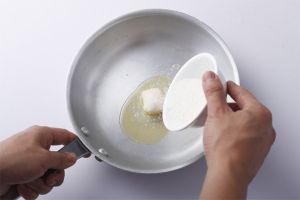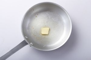 平底锅置火上加热,放入黄油小火融化。