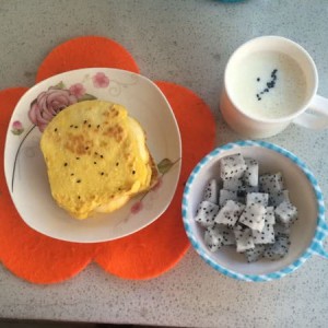 把鸡蛋打到盘子里,搅开,把馒头放进去裹上鸡蛋