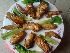 先把鸡翅放酱油腌制几分钟,然后放入五香粉搓在鸡翅膀上,用平底锅来煎,先在锅放油在放姜,就开始把鸡翅一个个放里边煎,几分钟翻几次直到颜色金黄色就可以出锅了。