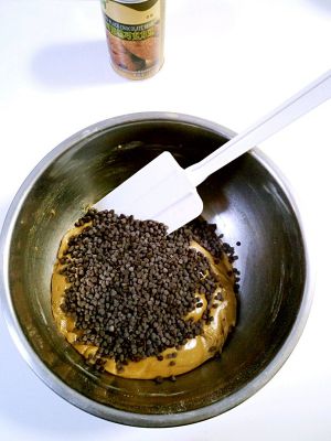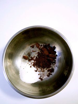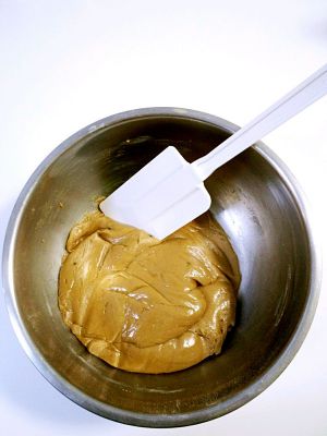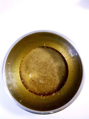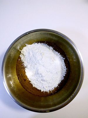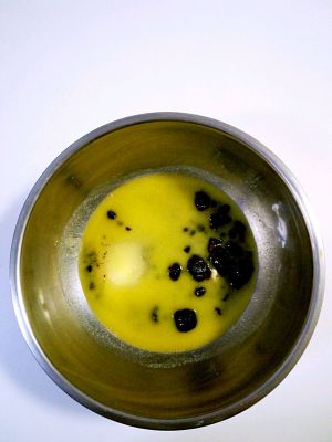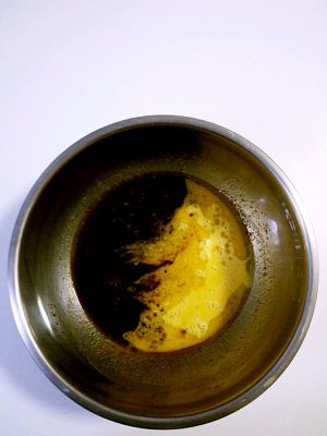 把鸡蛋液倒入红糖,白砂糖,黄油混合液中搅拌均匀。