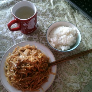 土豆丝变软有粘锅的迹象,就可以吃啦!