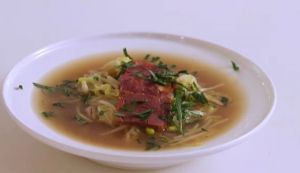 煮沸后改小火略煮3分钟后,将汤汁略收后,淋在面条上即可。