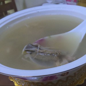 大火煮至汤沸,加入料酒和小葱段,转小火慢炖1.5小时。