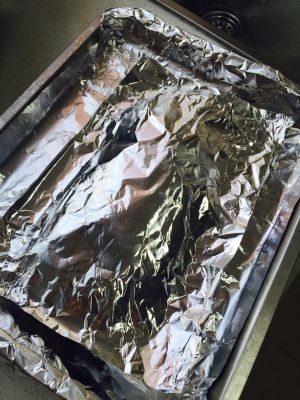 烤箱预热220度 上下火 烤盘铺锡纸 羊肉平铺抹色拉油 上盖锡纸 烤20分钟