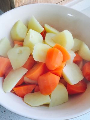 土豆 胡萝卜切滚刀块 开水入锅煮十分钟
