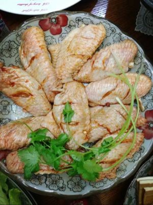 加入姜水,大蒜说,盐,我加了奥尔良烤翅料,味道和肯德基一样,提前一天把调料搞好放冰箱