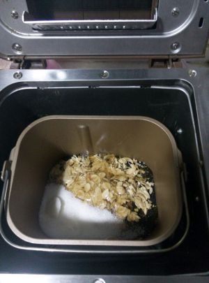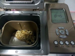 材料我就随便放的。放在面包机里用筷子搅拌一下。