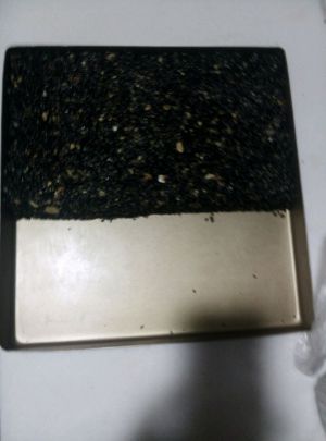 这个炒干货模式也是先预热后烘烤的。前期是热风预热后面翻炒。很快的功夫就好了。乘热放在烤盘里压平。