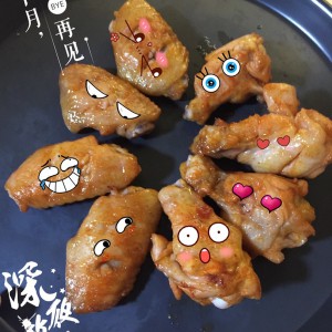 4.将蜂蜜少兑水,刷在鸡翅,正反刷。放入烤箱180°5分钟。