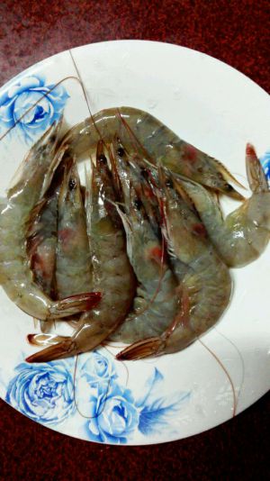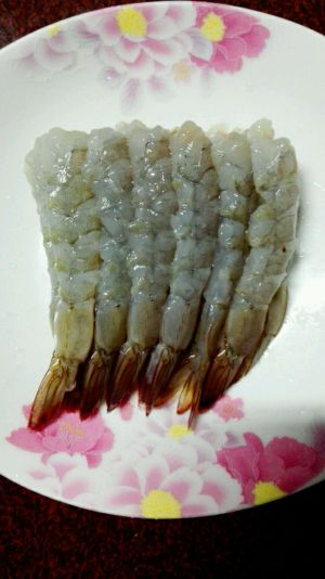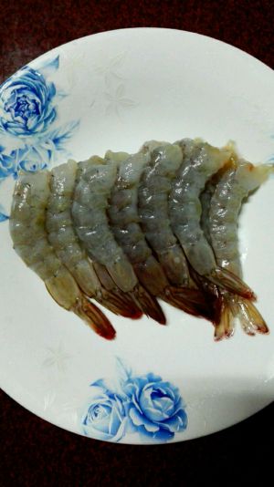 1、将虾洗净,去掉虾头,剥去皮,挑出虾线