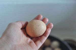 煮熟的鸡蛋,轻轻敲蛋壳,产生裂纹